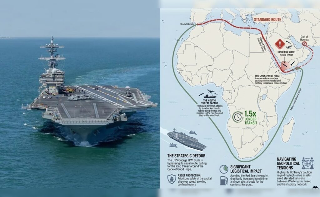 In a move that signals a tectonic shift in naval risk assessment, the USS George HW Bush—one of the world’s most formidable Nimitz-class supercarriers—is currently taking a massive detour around the African continent.